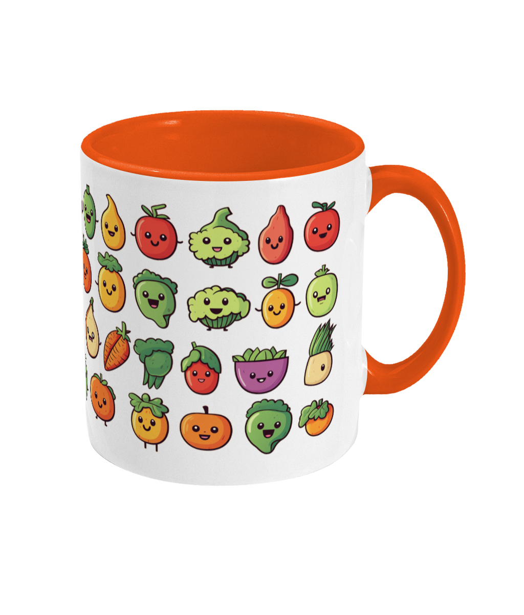 Breng kleur en gezondheid in elke slok met onze vrolijke mok, feestelijk versierd met fruit- en groente-emoticons. Laat je dag opfleuren met deze speelse en voedzame metgezel, waar elke sip een glimlach op je gezicht tovert. Voeg een vleugje positieve energie toe aan je koffiemomenten met deze limited edition mok - een smakelijke viering van frisheid en plezier!