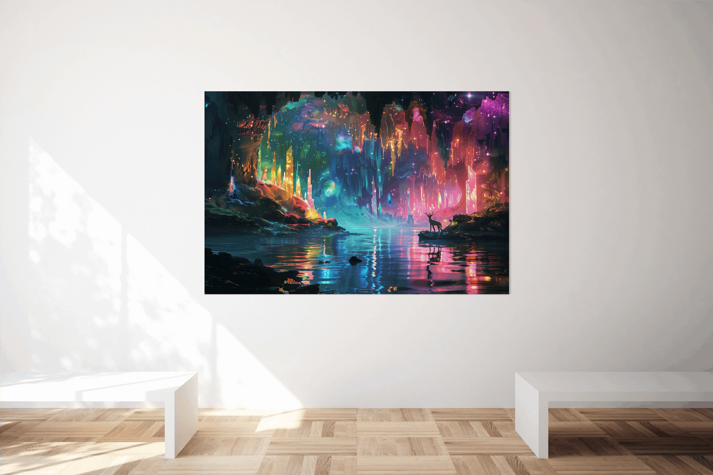 Be enchanted by our print on aluminum, depicting a mystical cave, created with the help of AI. This magical combination of art and technology captures the mysterious beauty and depth of the cave, lending every space an aura of adventure and intrigue. Add a touch of mystery to your interior with this unique masterpiece that pushes the boundaries of imagination and innovation.