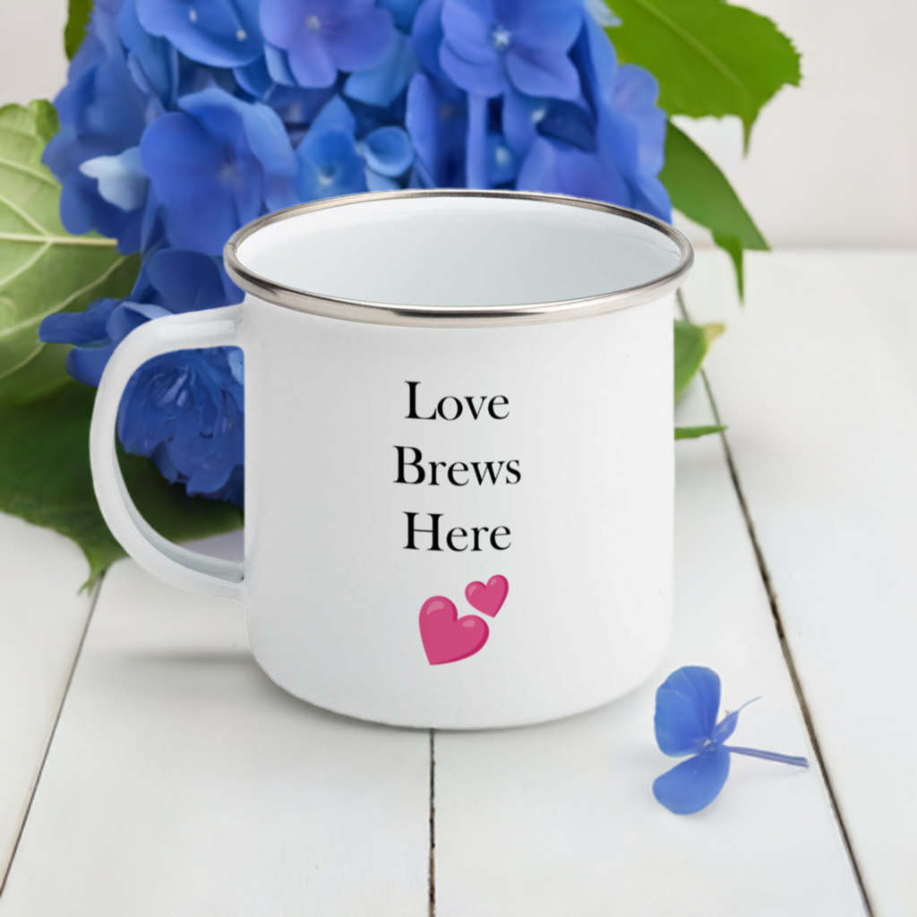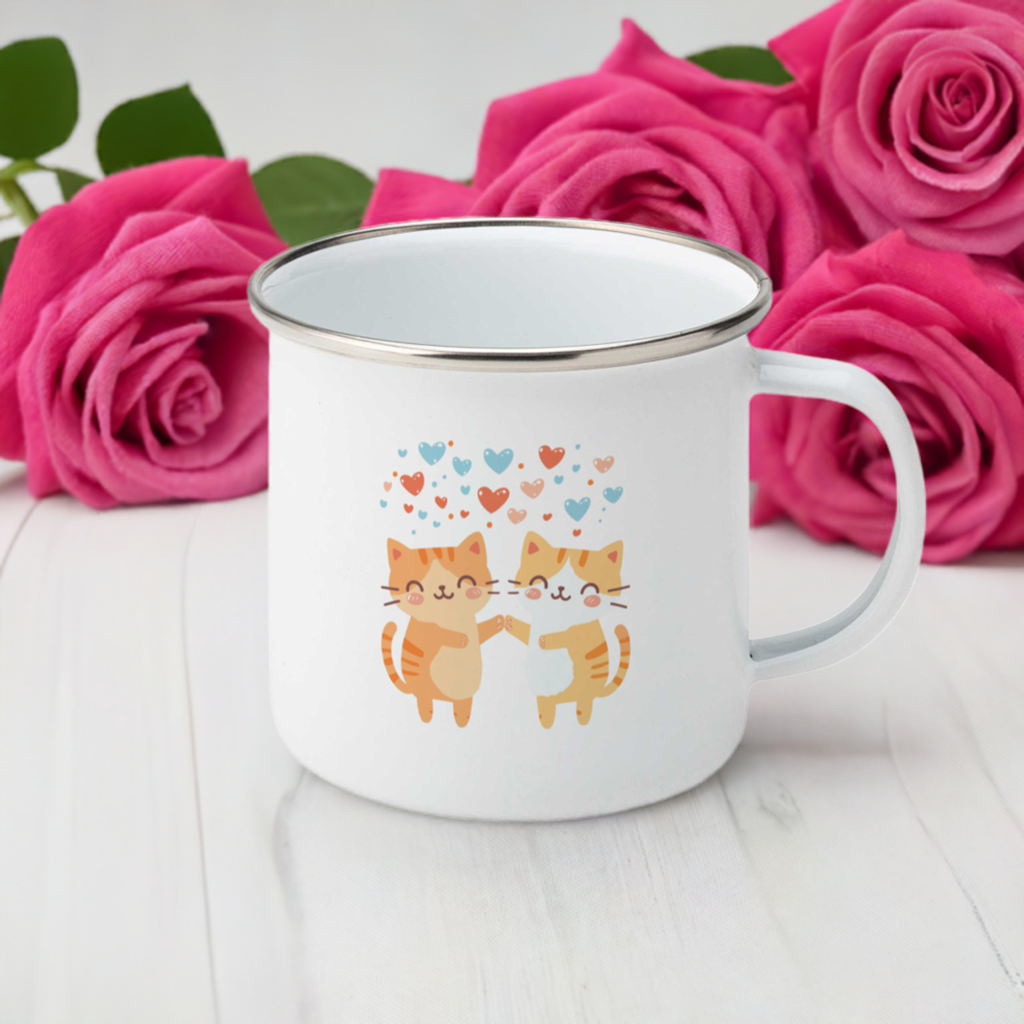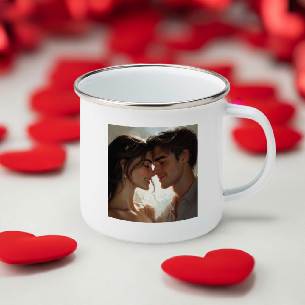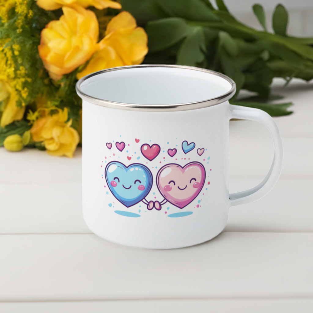 Maak Valentijnsdag extra bijzonder met een unieke emaille mok die je volledig naar wens kunt samenstellen.