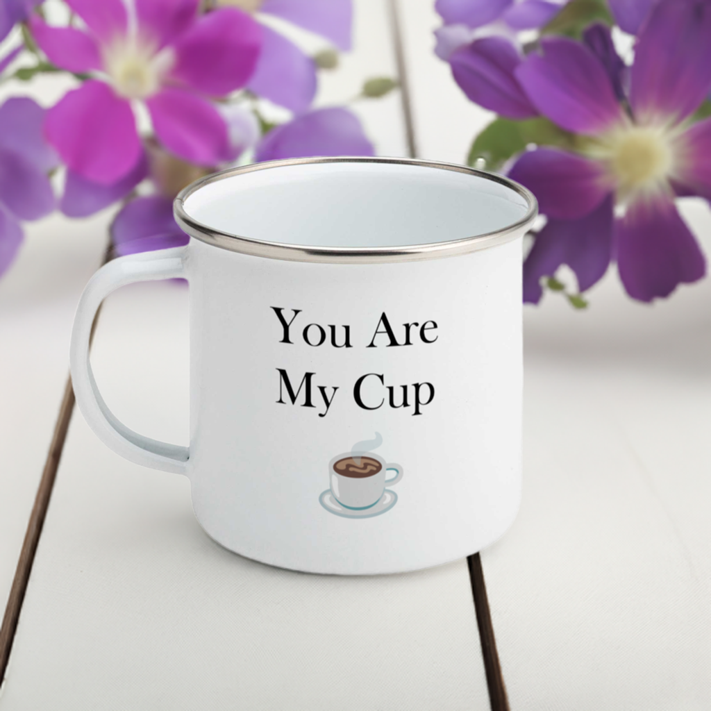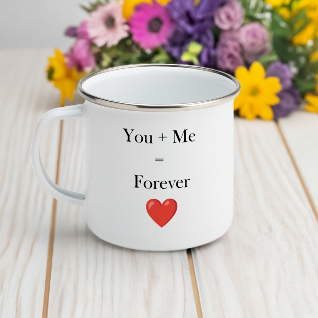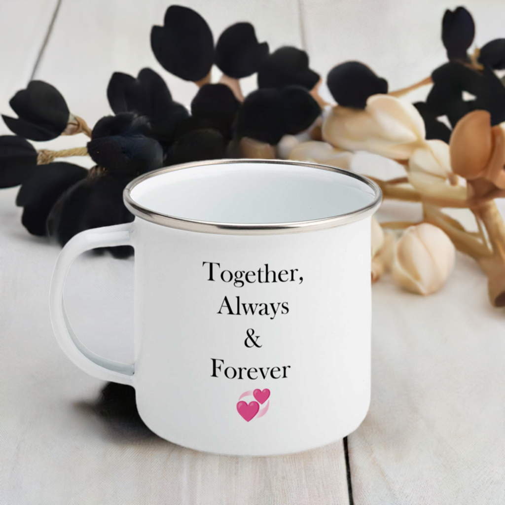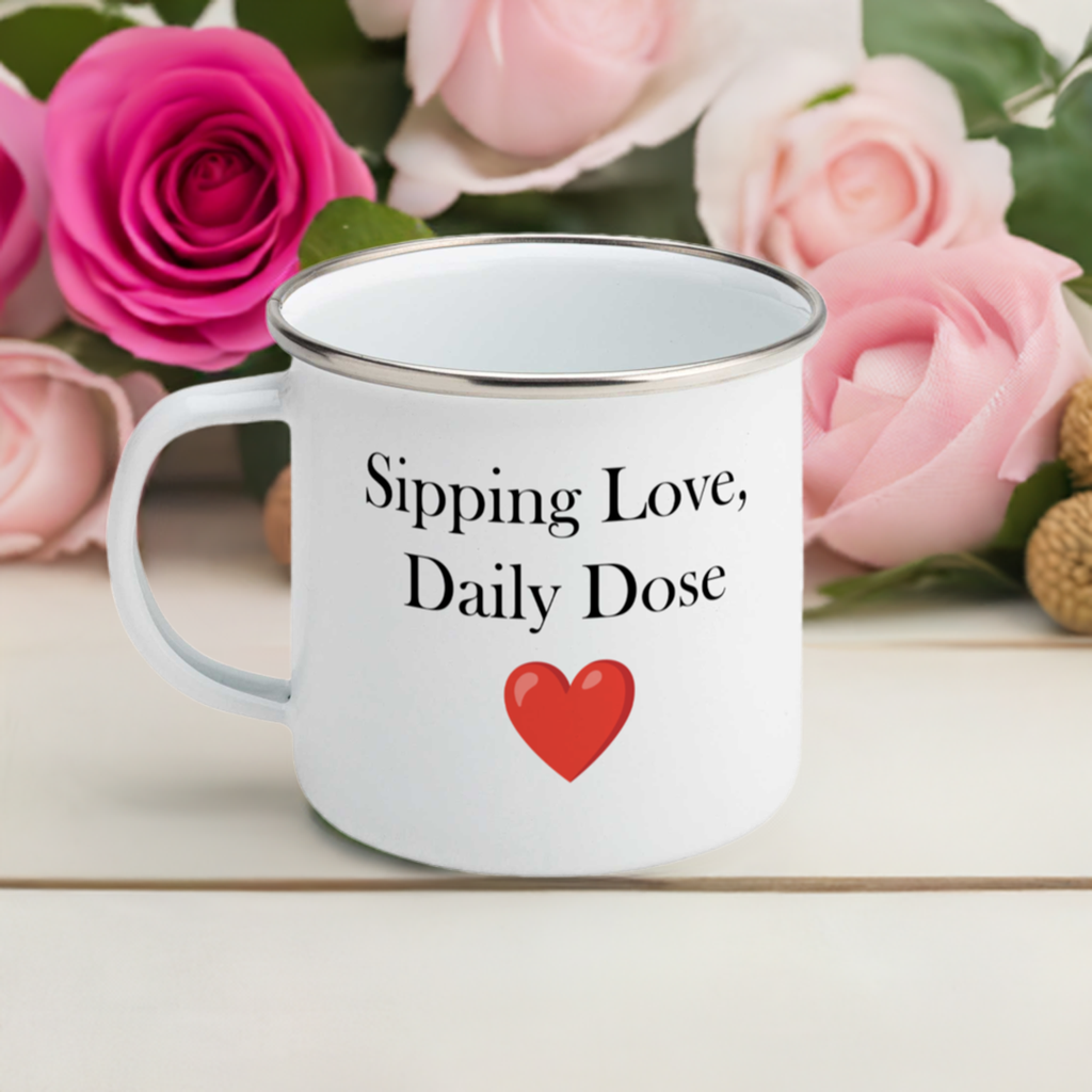Maak Valentijnsdag extra bijzonder met een unieke emaille mok die je volledig naar wens kunt samenstellen.